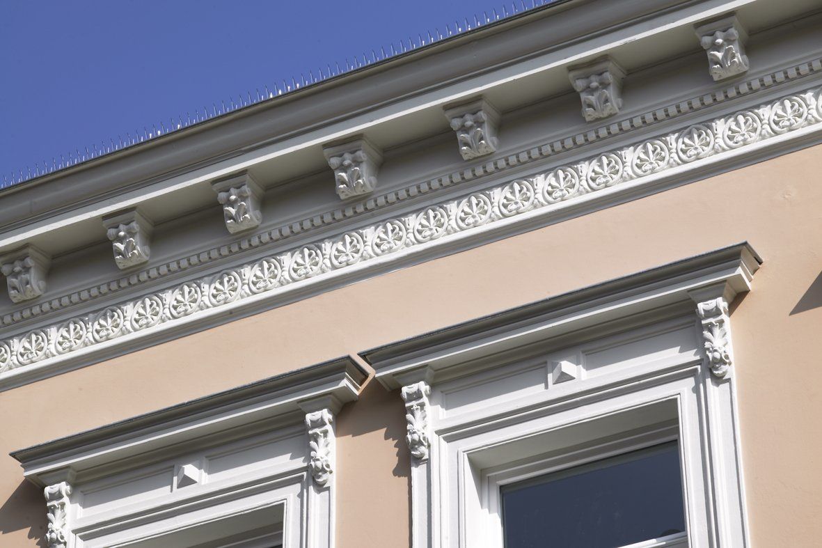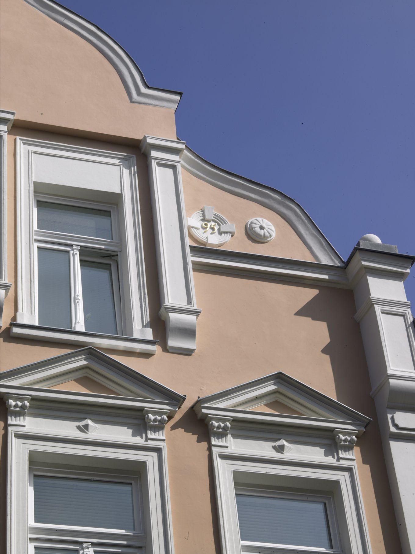Wir haben die komplette Sanierung der denkmalgeschützten Fassade des Kaiserhofes durchgeführt. Heute erstrahlt das geschichtsträchtige Gebäude in neuem Glanz! Besondere Aufmerksamkeit gilt es dem vergoldeten Jungengesicht mit Flügeln und der Jahreszahl 1895 zu schenken. Mit handwerklichem Geschick wurde hier in mehreren Schichten Blattgold verarbeitet.